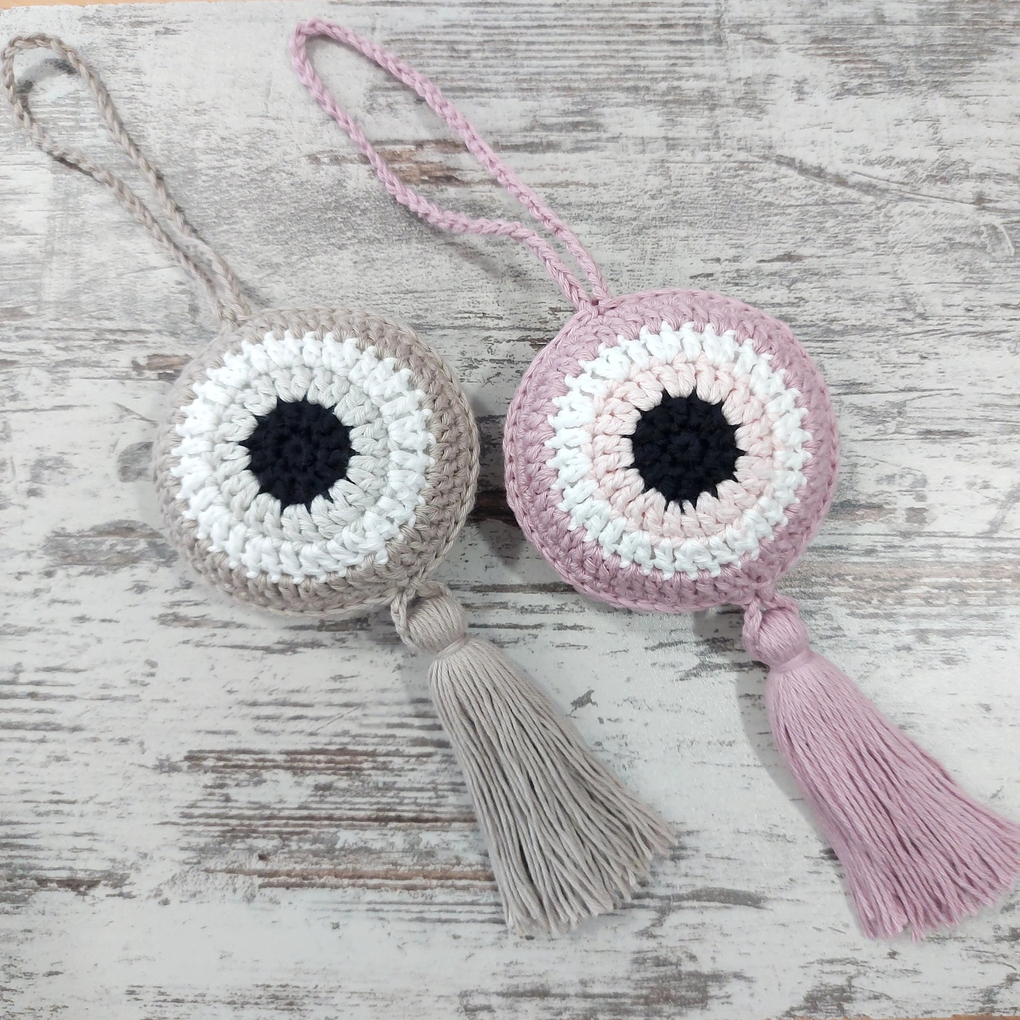Πλεκτό ματάκι με φούντα, μπεζ της άμμου ή dusty lilac, 10 εκ (limited)