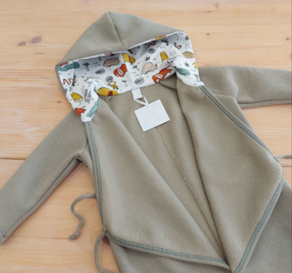 Κρουαζέ φορμάκι με κουκούλα από ζεστό φούτερ, λαδί με ζωάκια